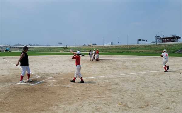 今週からはずいぶん涼しくなりましたが、残暑厳しい土曜日の午後、東京都足立区の西新井緑地B面にお邪魔しました。すべての野球グラウンドが埋まっており、学童野球・中学野球のクラブチームが練習をしている中に、小川監督に初めてお会いしました。